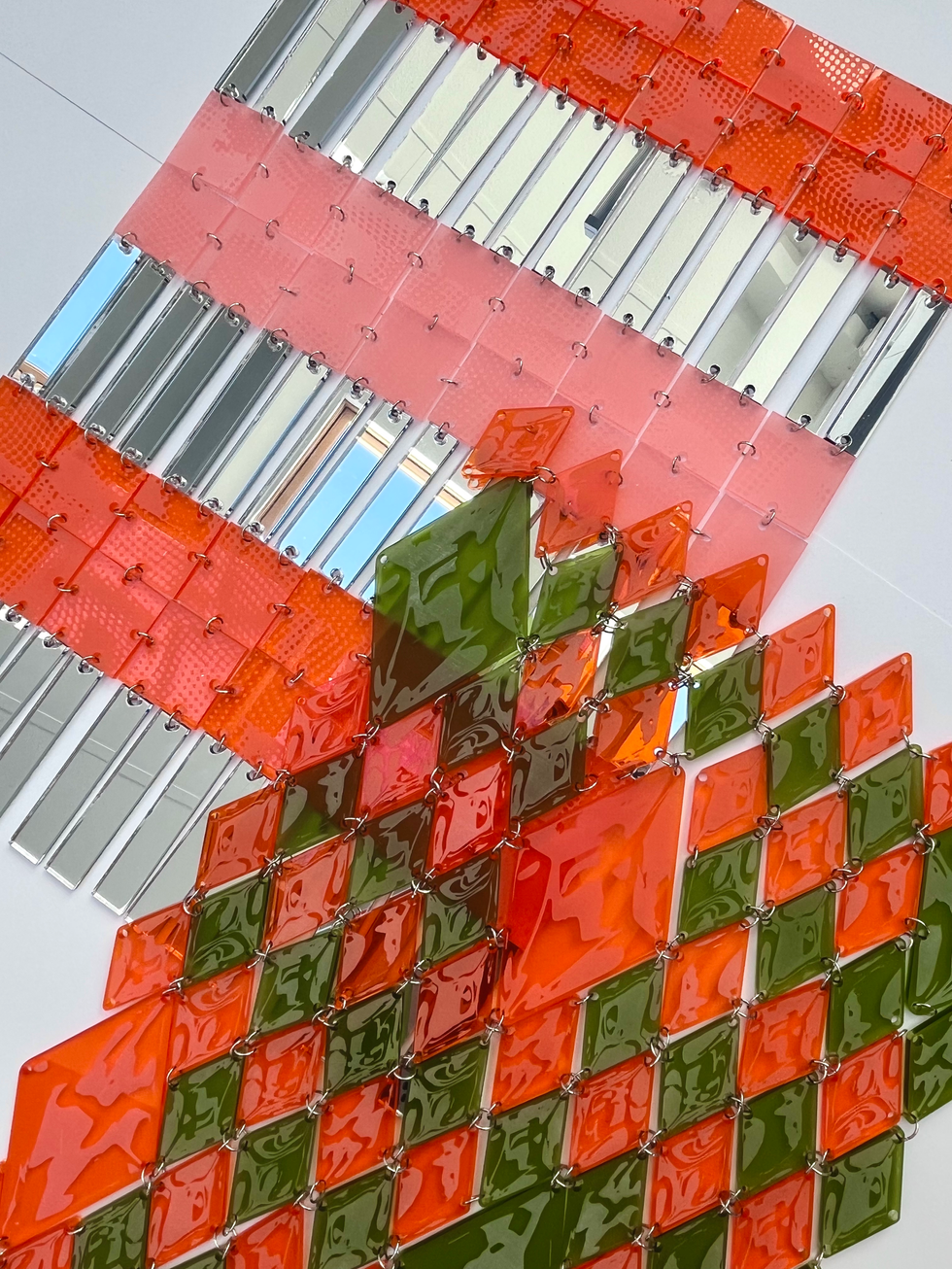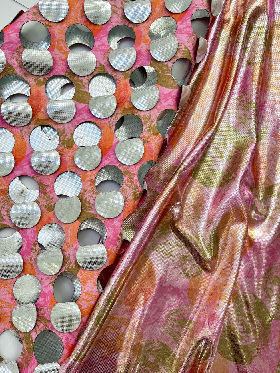 This project explores the social and political impact of 60s fashion and textiles, a time of freedom and rebellion. Inspired by Op Art, interiors, and architecture, I used digital embroidery and material manipulation to create and capture the era’s bold, liberating spirit.